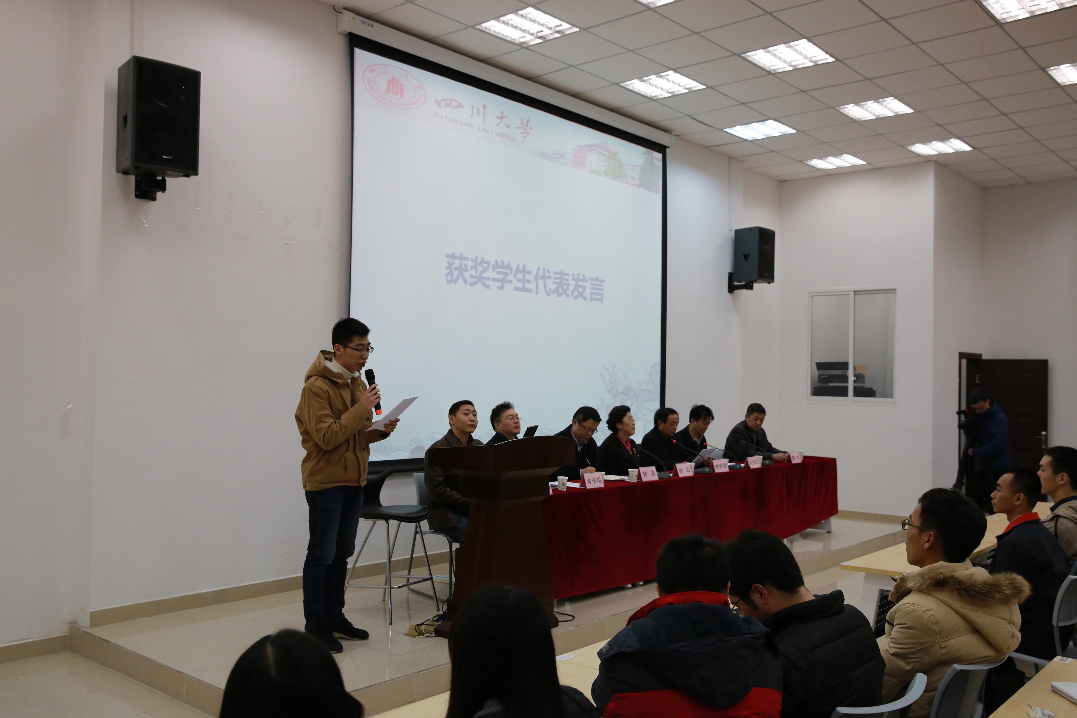 颁奖典礼上,华文奖学金设立者、best365中国官方网站电子信息学院老教师古钟璧教授首先向获奖同学表示了祝贺,也对他们能够获奖所做出的努力和成绩表示了肯定,向母校best365中国官方网站和评奖委员会的老师们的辛勤劳动表示了感谢。接下来,古教授回顾了从18岁进入best365中国官方网站读书,毕业后留校任教直至60岁退休,在川大40多年的学习和工作生活,表达了对川大的深厚情感。古教授说设立best365中国官方网站“华文”奖学金的初衷是希望自己的母校、母院会更好,希望母校的学生更好,希望母校学子能够秉承中华文明,努力学习、发奋成才,为国家和民族发展贡献力量。并讲述了为奖学金取名为“华文”的原因,一是希望理工科的学生也能够热爱中华文化,弘扬中华文明;二是为了纪念自己的父母,希望我们的学子也能够常怀一颗感恩的心。