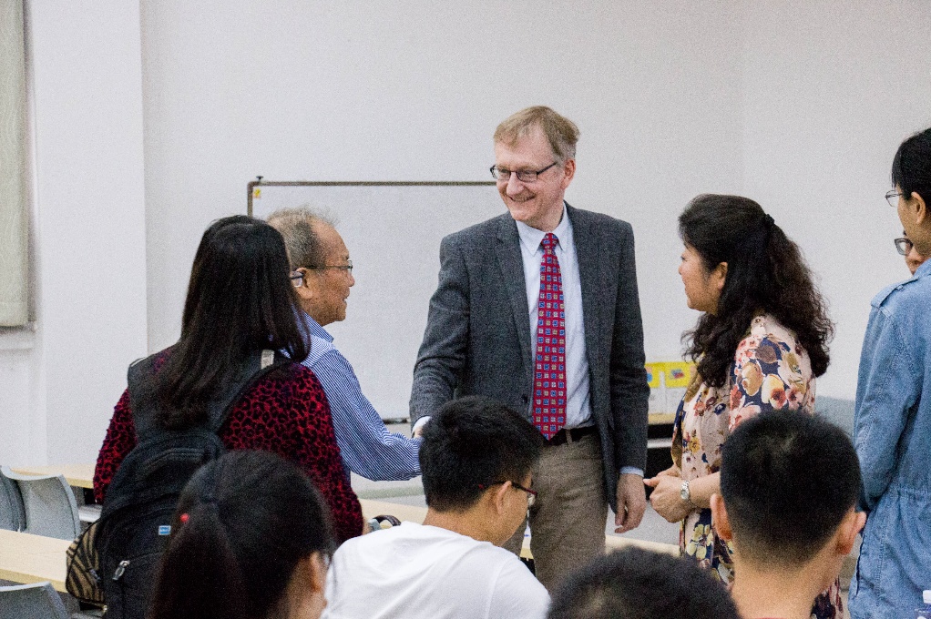 英国南安普顿大学光电子研究中心在光纤、光纤光放大器、光纤陀螺仪、光纤传感技术、光纤激光器等方面的研究处于世界领先水平。Morten Ibsen 教授和华萍高级研究员首先介绍了英国南安普顿大学优秀的教学条件及科研环境,然后以 “Paving the Way for the Internet of Things: Ground-breaking Developments in Photonics at the ORC” 为主题,详细介绍了南安普顿大学光电子研究中心在单频光纤激光器、光纤光栅制备及传感等领域的突破性成就及进展。讲座后,专家与师生进行了学术交流和探讨,就诸多热点难点学术问题展开了激烈的讨论。