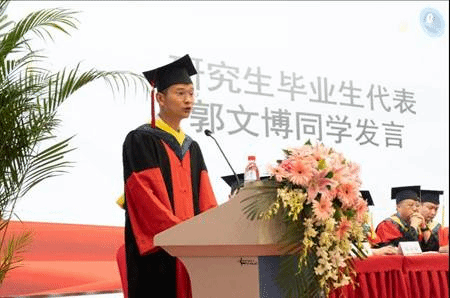 博士研究生郭文博同学在发言中回顾了在川大9年的求学经历,有迷失、有波折,他说“是学院和老师的鼓励让我有了搏击长空的勇气,是学院和老师的指引让我有了乘风破浪的壮志”,执着付出后最终他取得了丰硕的成果。他感恩学院、感恩老师,代表研究生们表示将用电子人的光芒去照亮更多的梦想!