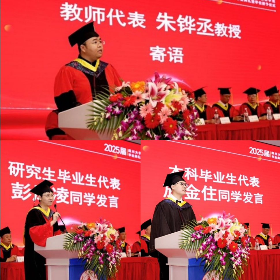 研究生代表彭凤凌博士深情地回顾了在川大求学的难忘岁月,真诚感谢导师的谆谆教诲和学院的悉心栽培,期盼大家在追求卓越的道路上携手同行。