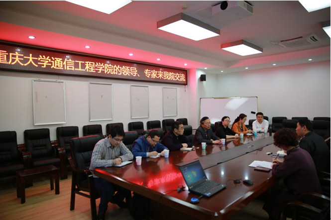 2018年3月23日上午,在望江基教楼A303会议室,重庆大学通信工程学院印勇副院长一行来我院访问。学院党委陈笃海副书记,教务办公室老师陪同与到访嘉宾座谈。