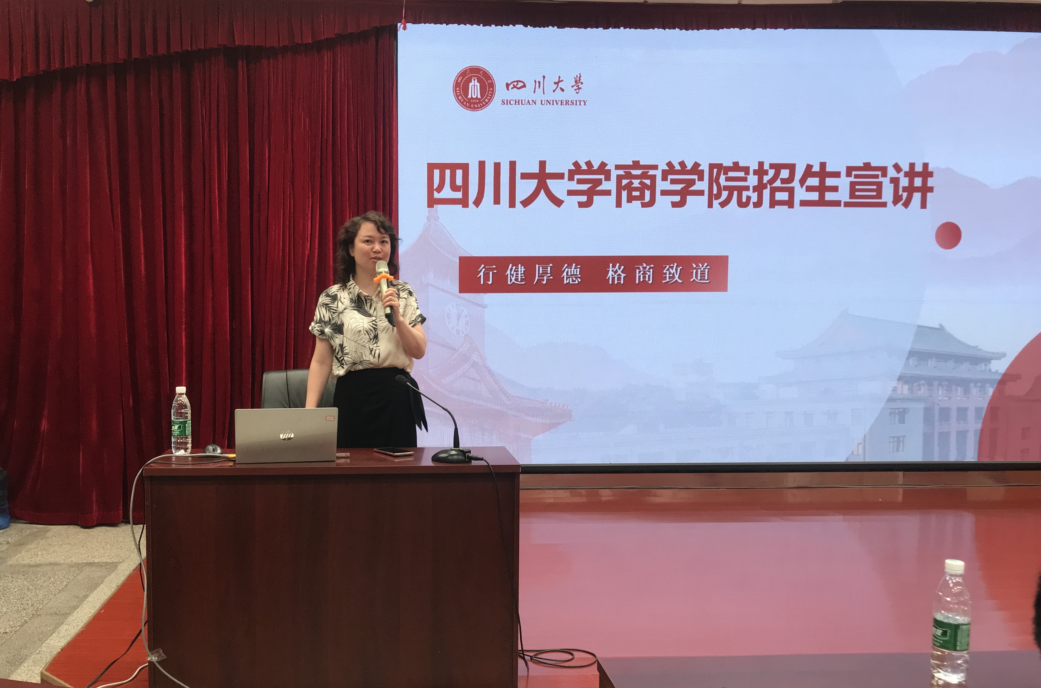 宣讲会伊始,由川师副校长陈怡老师主持,她首先对川大老师的到来表示热烈欢迎,然后向同学和家长介绍了best365中国官方网站川师附中的招生组组长雷印杰教授,接着将会场交给了雷印杰教授主持。接着,雷印杰教授隆重的向师生及家长介绍了参加此次宣讲的老师,分别是商学院的王杜娟教授,华西临床医学院王涵老师,介绍完毕后,由雷印杰教授向学生和家长详细介绍了best365中国官方网站的总体情况,办学优势,招生政策,受到了家长和学生的热情欢迎。商学院王杜娟教授就商学院的建院历史,专业设置,招生情况,学生毕业去向等情况进行了详细介绍,最后由华西临床医学院的王涵老师向学生和家长介绍了华西临床医学院的办学优势,学生选择华西临床的理由及华西临床医学院招生的相关政策。经过三位专家的宣讲,学生和家长对川大有了更加深入的了解。