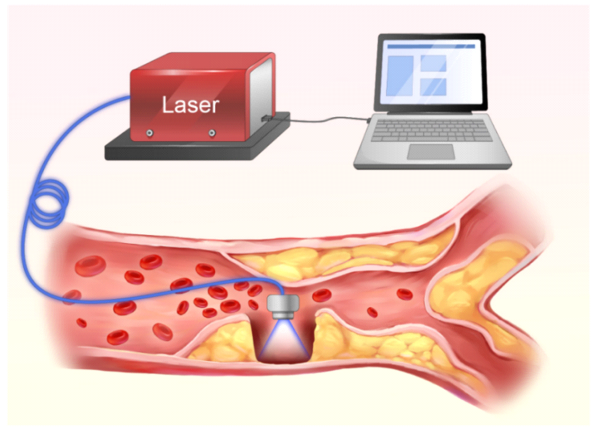 中红外飞秒激光介入式消融动脉硬化斑块概念示意图