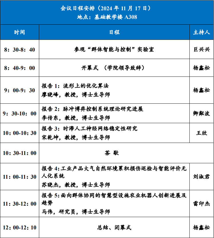【报告人简介】 苏晓杰,重庆大学自动化学院院长,教授、博导,重庆大学控制科学与工程学术委员会主席,重庆大学自动化学院教指委主任。入选国家级高层次青年人才,获重庆市杰出青年基金,重庆五四青年奖章等。主要从事智能控制理论及智慧无人系统应用领域研究,已出版学术专著3部,发表学术论文50余篇。主持国家重大科技专项、国家重点研发计划、国家自然科学基金联合重点等20余项。2020年获重庆市自然科学一等奖及重庆市十佳科技青年奖等。2022年获IEEE SMC Early Career Award。入选2017-2023年工程领域全球高被引科学家。现任IEEE Beijing Section SMC and RA Joint Societies Chapter主席及担任IEEE Trans. Artificial Intelligence、IEEE Trans. Fuzzy Systems、IEEE Trans. Systems, Man, and Cybernetics: Systems、IEEE Systems Journal等十余个国际期刊Associate Editor,中国自动化学会理事等职务。