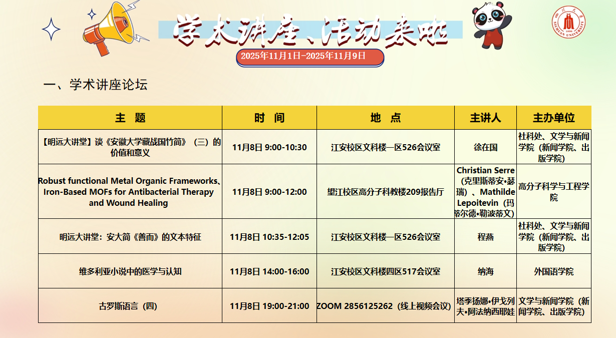 2025年11月1日-2025年11月9日学术讲座、活动安排