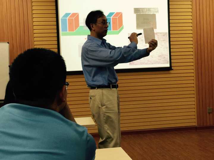 Jiming Bao教授给我们讲了他最近在研究的两个方向:磁性对齐的石墨烯和激光流。首先,Jiming Bao教授给我们介绍了石墨烯优异的电学、热学和力学等优异性能,并详细讲解了石墨烯的抗磁特性及其如何利用磁场来控制片状石墨烯的状态。Jiming Bao教授注重理论和实际应用的结合,为我们展示了磁场控制下的石墨烯传感器。