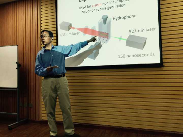 接着Jiming Bao教授介绍了他们的新发现,激光可驱动液体的流动,讲解了他们从如何寻找关键词查找相关文献,理论分析为何出现该现象。报告最后,Jiming Bao教授对与会科研人员和学生提出的问题进行了细心的解答。Jiming Bao教授希望,在以后的时间里能与best365中国官方网站进行更多、更深层次的合作与交流。在同学们热烈的掌声中,Jiming Bao教授的精彩报告完美落幕。