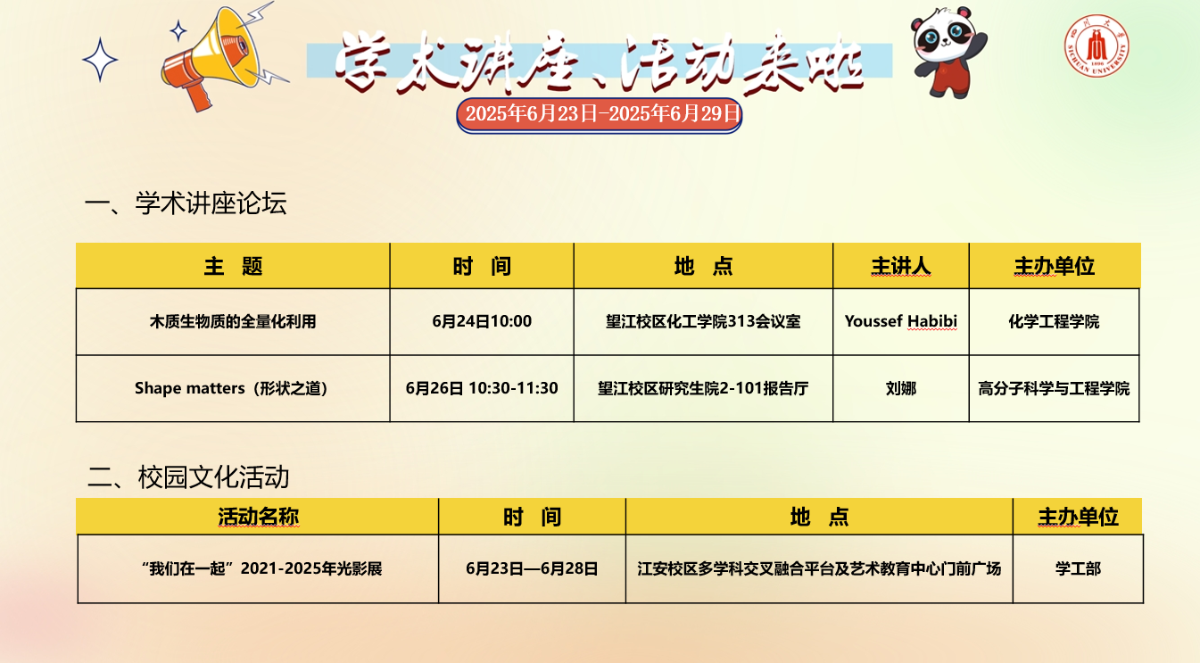 2025年6月23日至29日学术交流、活动安排