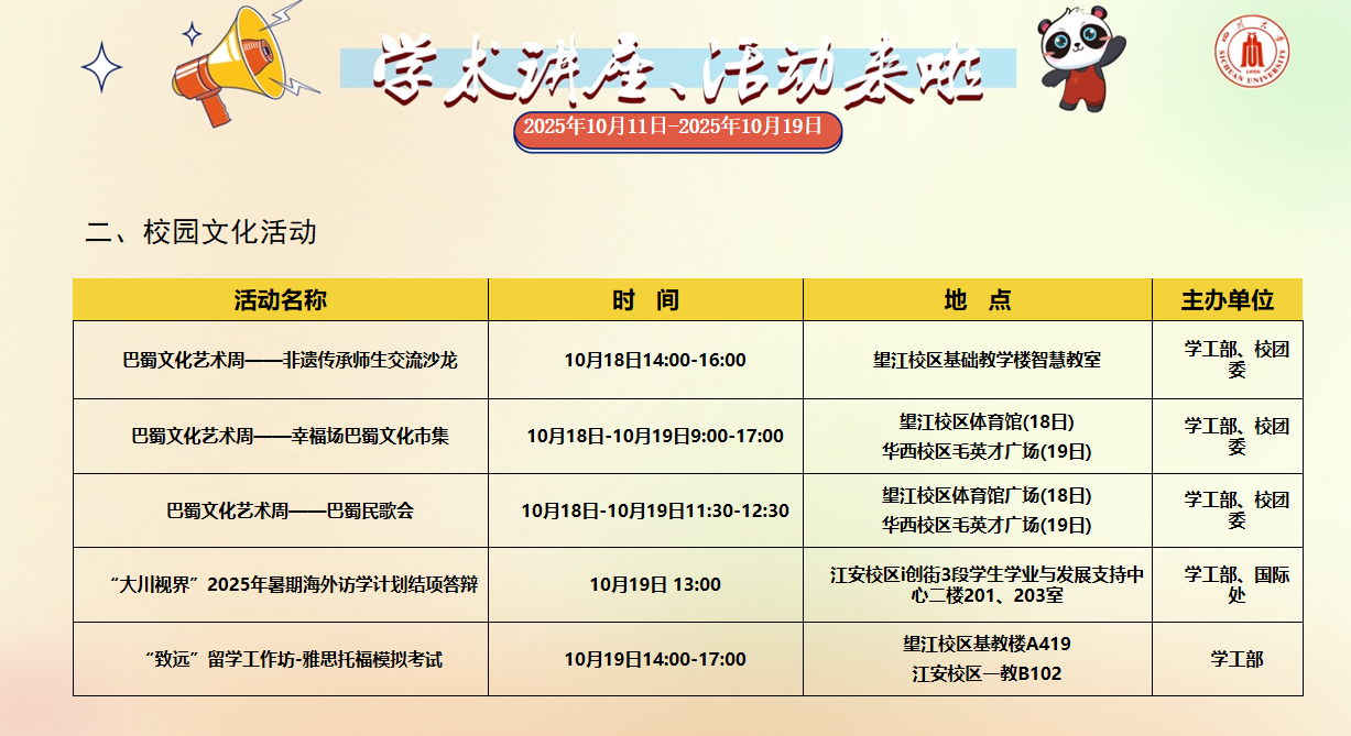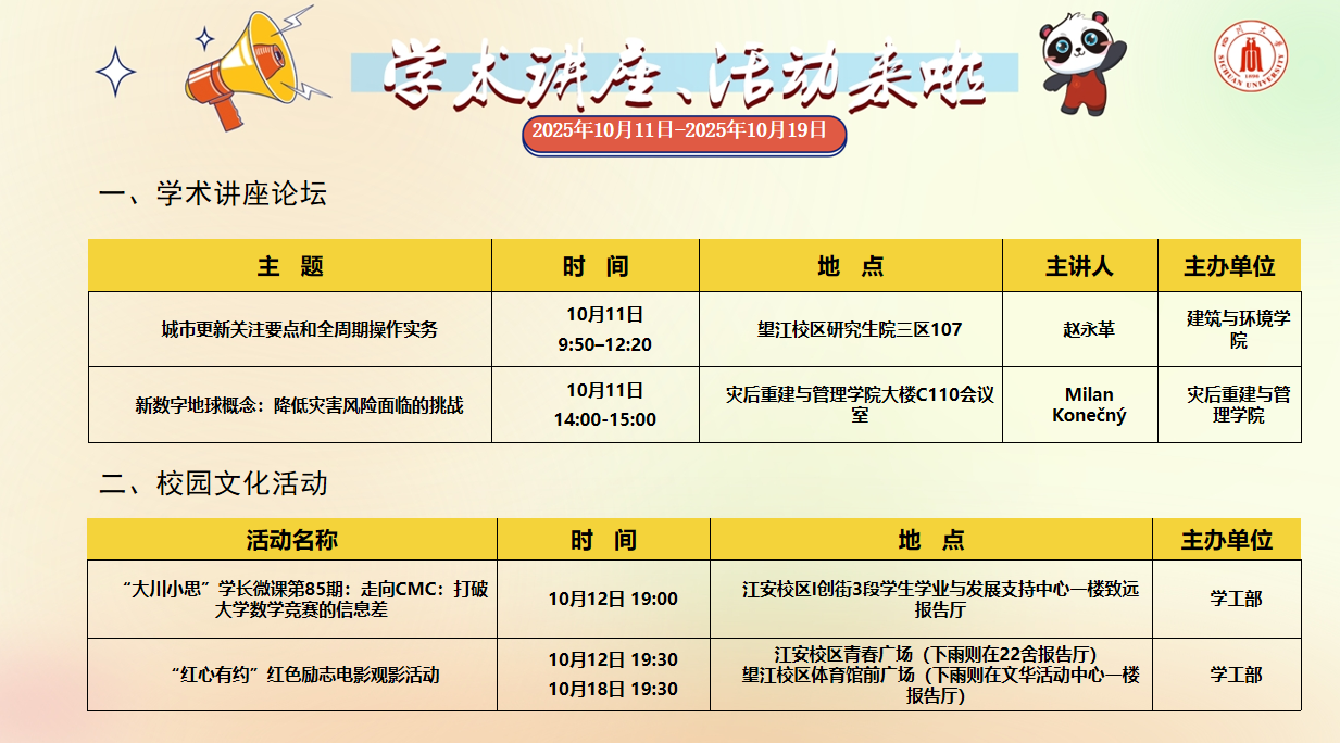 2025年10月11日-2025年10月19日学术讲座、活动安排
