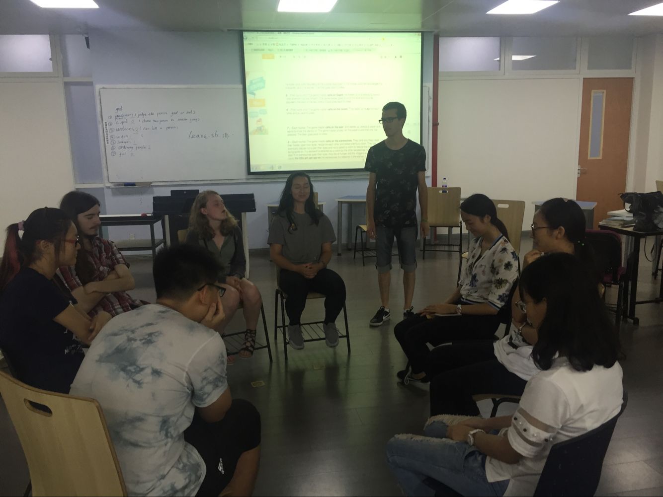 秉承循序渐进的原则,在第一个游戏时,选择了一个中外同学都很熟悉的游戏uno,大家对这个游戏都很熟悉,在游戏的过程中,彼此的融洽程度进一步加强,在愉快的氛围中结束了第一个游戏。第二个游戏则是狼人杀,这个游戏对于交流营的女同学来说不是很熟悉,但男同学很感兴趣,积极地与我院学生交流讨论游戏规则,最终由其中的一位留学生为所有同学解释游戏规则,大家一起参与到了整个游戏当中,虽然刚开始不是很顺畅,但在大家边玩边交流的过程中,大家愈来愈熟悉,在游戏中的沟通也越来越顺畅,在愉快的氛围中结束了本次的交流活动。
