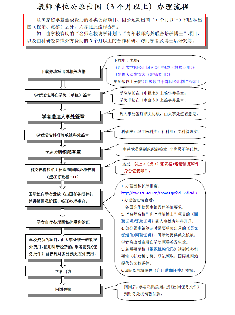 教师单位公派出国(3个月以上)办理流程