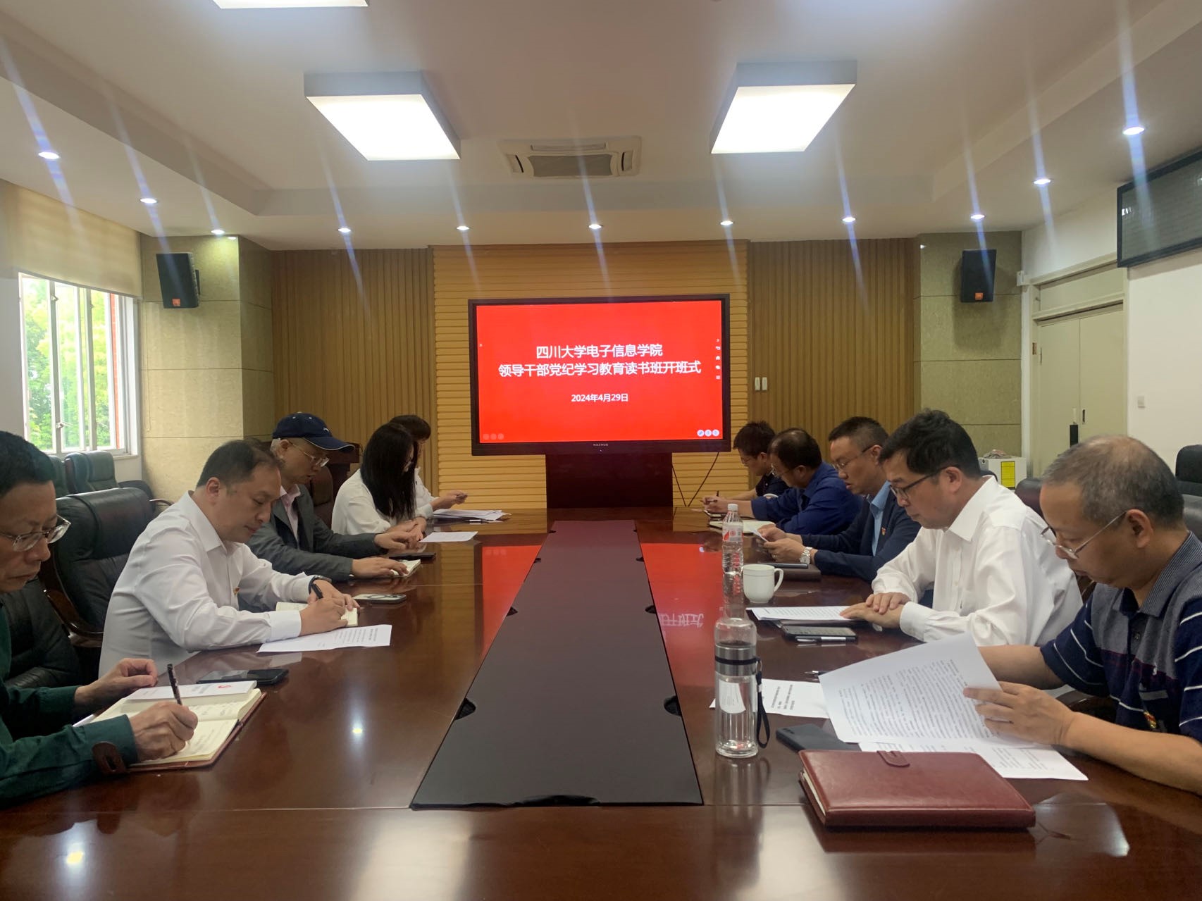4月29日,电子信息学院领导干部党纪学习教育读书班开班式在望江校区基础教学楼举行。学院班子成员,两委委员,专职组织员,科级干部等参加会议。开班式由学院院长杨阳主持。