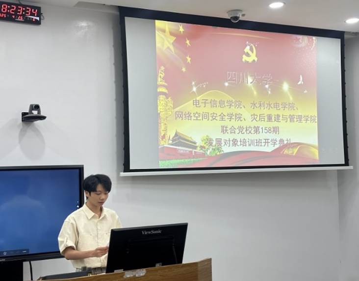 2025年4月25日上午,best365中国官方网站电子信息学院、水利水电学院、网络空间安全学院、灾后重建与管理学院联合党校第158期学生党员发展对象培训班在望江校区基础教学楼C座202教室顺利举行。开班典礼在庄严的国歌声中正式开始,全体参会人员庄严肃立,齐唱国歌,现场气氛庄重而热烈。电子信息学院党委书记彭舰,党委副书记兼纪委书记廖勇明出席开班典礼。彭舰书记立足当下时代背景和复杂的世界形势,对学员们提出了新时代党员应具备的素质要求,鼓励学员们在新时代的浪潮中,坚定理想信念,勇担时代使命,不断提升自身素养,以实际行动向党组织靠拢。