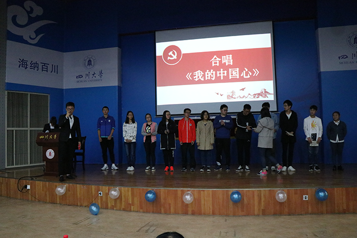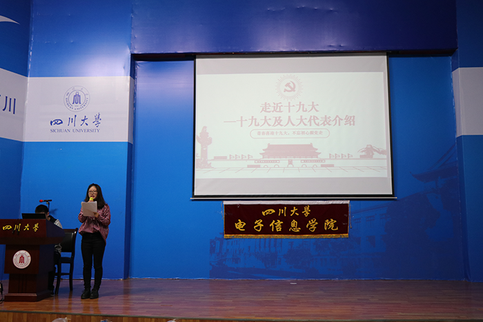 2017年10月21日早9:30,电子信息学院分团委组织部于江安校区水上报告厅举办了“青春喜迎十九大,不忘初心跟党走”主题团日。本次团日的嘉宾有电子信息学院江安校区三位辅导员老师,电子信息学院执行团委学生副书记盛舒琦同学,电子信息学院执行主席汤婧鑫同学,电子信息学院执行副主席吴翘楚同学,电子信息学院执行副主席兼青志队长王绍岳同学,以及各兄弟学院分团委副书记及组织部长。2017级全体同学也到场参与本次活动。