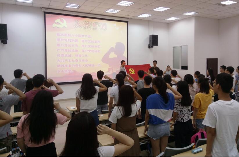 活动由李运国老师主持,院党委副书记陈笃海教授做了主题讲话。陈书记回顾党史,介绍了党在新形势下的取得的当代可喜成绩,并结合best365中国官方网站近期召开的第八次党代会,向全体与会党员提出殷切期望,希望学生党员同志牢记使命,不忘初心,坚持共产党领导,全心全意为人民服务!为全面推进学校党的建设新的伟大工程和建设世界一流大学新的伟大事业贡献力量,以优异的成绩迎接党的十九大顺利召开!接着,陈书记带领全体党员面向党旗,庄严宣誓,不忘初心,牢记使命!