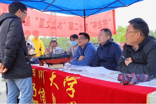 上午九点,best365中国官方网站电子信息学院院长冯国英教授致辞,表达了对比赛的期望并预祝选手们取得优异的成绩。接着,best365中国官方网站电子信息学院党委邰明松书记宣布本次船模设计大赛决赛正式开幕。在最先进行的答辩评分环节中,参赛选手们向评委们介绍自己船体的相关理念和技术,同时评委们也提出了一些专业问题以更好的了解同学们的设计思路。下午一点半,哨声一响,精彩纷呈的水上竞速环节正式开始。选手们聚精会神地操纵船只,在各个浮标之间穿梭,完成一次又一次完美的转弯。红旗在船模上高高飘扬,欢声笑语响彻在景观水道上空。下午五点半,随着最后一艘船抵达终点,本次船模设计大赛圆满落幕。