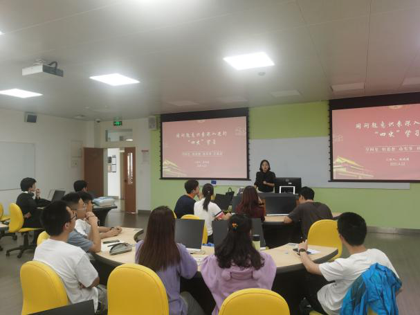 活动最后,陈晓娟同志表示:“通过这次四史学习,希望正式党员能进一步对党史有深入认识,有更深的思考,来指导他们在日常学习工作中起到党员模范带头作用;对于入党积极分子,则是希望他们能够在这次学习活动中,进一步了解党的宗旨、党的历史,端正入党动机,激励他们在思想上和行动上向党组织靠拢。在和大家的交流学习中,我也听到了同学们的一些想法,这是一个教学相长的过程,在准备到讲授本次主题党课的过程中,也是对我党性认识的一次提升。”
