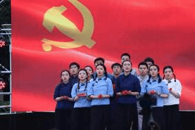 电子信息学院的舞蹈以红船为引子,结合共产党人勇于探索,永不屈服的精神,编排了参赛舞蹈《红船》。1921年夏,中国共产党第一次全国代表大会因遭到法租界巡捕袭扰,被迫由上海转移到嘉兴南湖的一艘画舫上继续举行,在这里完成了大会议程,宣告中国共产党的成立。因此,这艘画舫成为了中国革命源头的象征,获得了一个永载中国革命史册的名字—红船。舞蹈总共分为三大段,第一段是平静,代表着当时志士仁人对拯救中国方法的寻找与探索。第二段比较紧张,代表了共产党人在兵荒马乱中相互依靠挣扎前行的艰苦状况,有的甚至被捕入狱。然而坚强的共产党人并非没有放弃,所以紧接着第三段也就是希望。无数的共产党人在追寻真理的途中献出了宝贵的生命,但同时也带了希望,迎来了胜利,一代又一代人接过共产主义事业的接力棒。