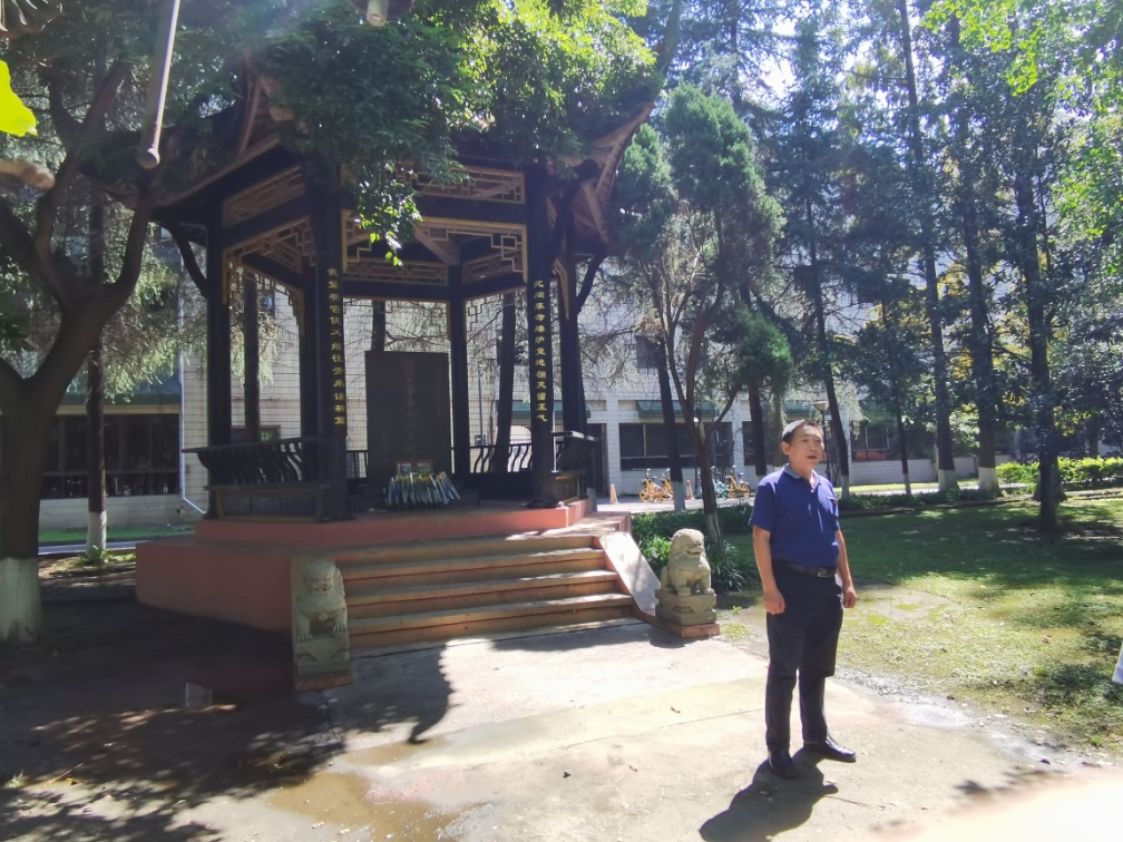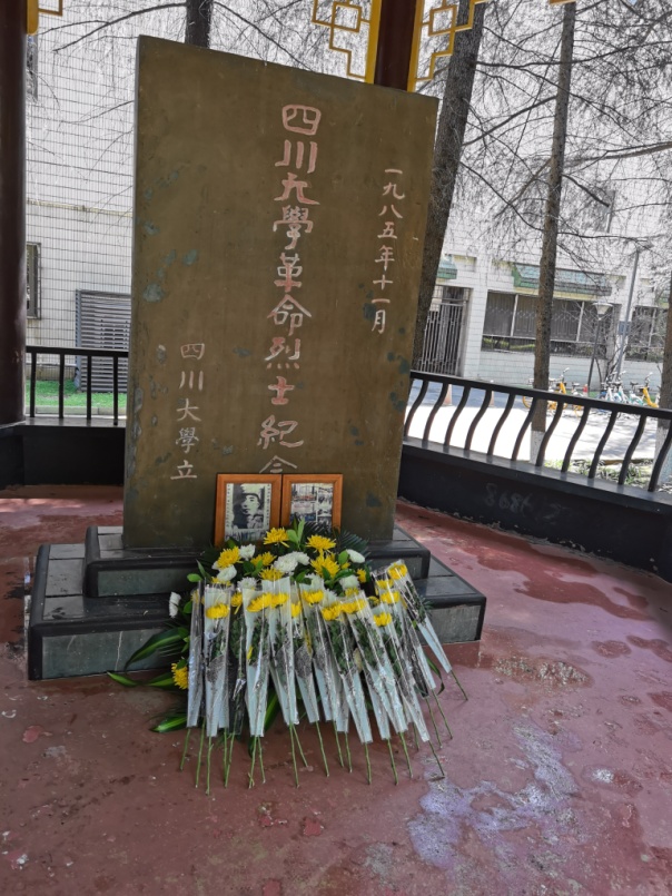 活动伊始,主持人首先介绍best365中国官方网站革命英雄纪念碑。best365中国官方网站革命先烈纪念碑是为建立新中国而英勇牺牲的川大师生而于1985年修建的,碑亭立柱上有一副对联,上联是“此间革命熔炉复地翻天留正气”,下联是“我辈黉宫俊人继往开来谱新篇”,纪念碑背面刻有张培爵、王右木、恽代英、童庸生、杨闇公、袁诗尧、李正恩、江竹筠(江姐)等四十多位曾经在川大学习和工作过的革命烈士的名字。