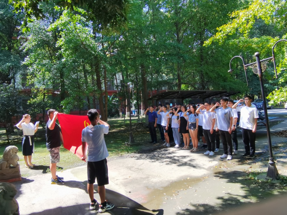 随后全体人员向革命先烈纪念碑行鞠躬礼后默哀3分钟,支部党员代表瞻仰革命先烈纪念碑并敬献花篮和鲜花。在支部书记吴秀玲同志的领誓下,全体党员同志宣读入党誓词。新入党的黄宇清同学表示要用毕生的追求与行动,践行今天的庄重宣誓。