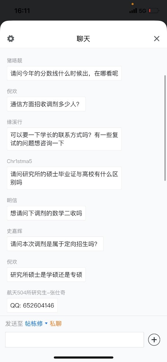 分享环节最后,中国航天科工集团第二研究院研究生院招生主管董老师为大家介绍了航天二院的情况与政策,并对调剂到研究所的优势和研究所的培养模式进行了细致的讲解。在答疑环节同学们的积极提问,考研调剂经验分享会在大家轻松愉快的氛围中圆满结束。