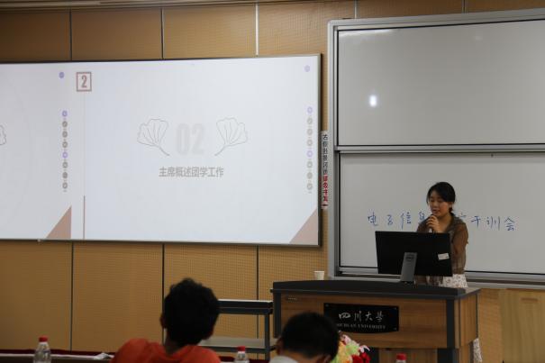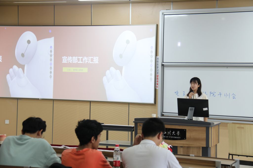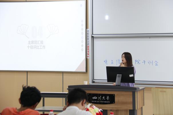 在本次干训会中,首先由部长团对上学期各部门的工作进行汇报,分别介绍了已取得的工作成果和部门建设,讲述了对于新学期活动的工作安排。随后,团委学生会主席史遵琳对团学工作进行概述,展示了对电子信息学院团委学生会的年度规划与自我认知,并表达了自我反思。接着,孔洁老师讲述了对团学工作的未来展望,首先希望学生会各部同学比照初心,以同学为出发点,为同学们服务;其次希望各部同学比照职责,努力工作;最后希望各部同学比照过去,根据问题找方法,对比过去看突破。随后,孔洁老师又提出了本次干训会各部门汇报存在的一些问题,如希望各部门突出问题解决方法、注意介绍活动亮点等。紧接着,电子信息学院分团委学生会副主席李嘉豪对“十佳学生会”材料准备情况进行了汇报,分别介绍了电子科技园“船模”比赛、权益素拓部基础调研工作和干部培养工作。最后,团委学生副书记丁雨欣汇报了十佳评比工作。