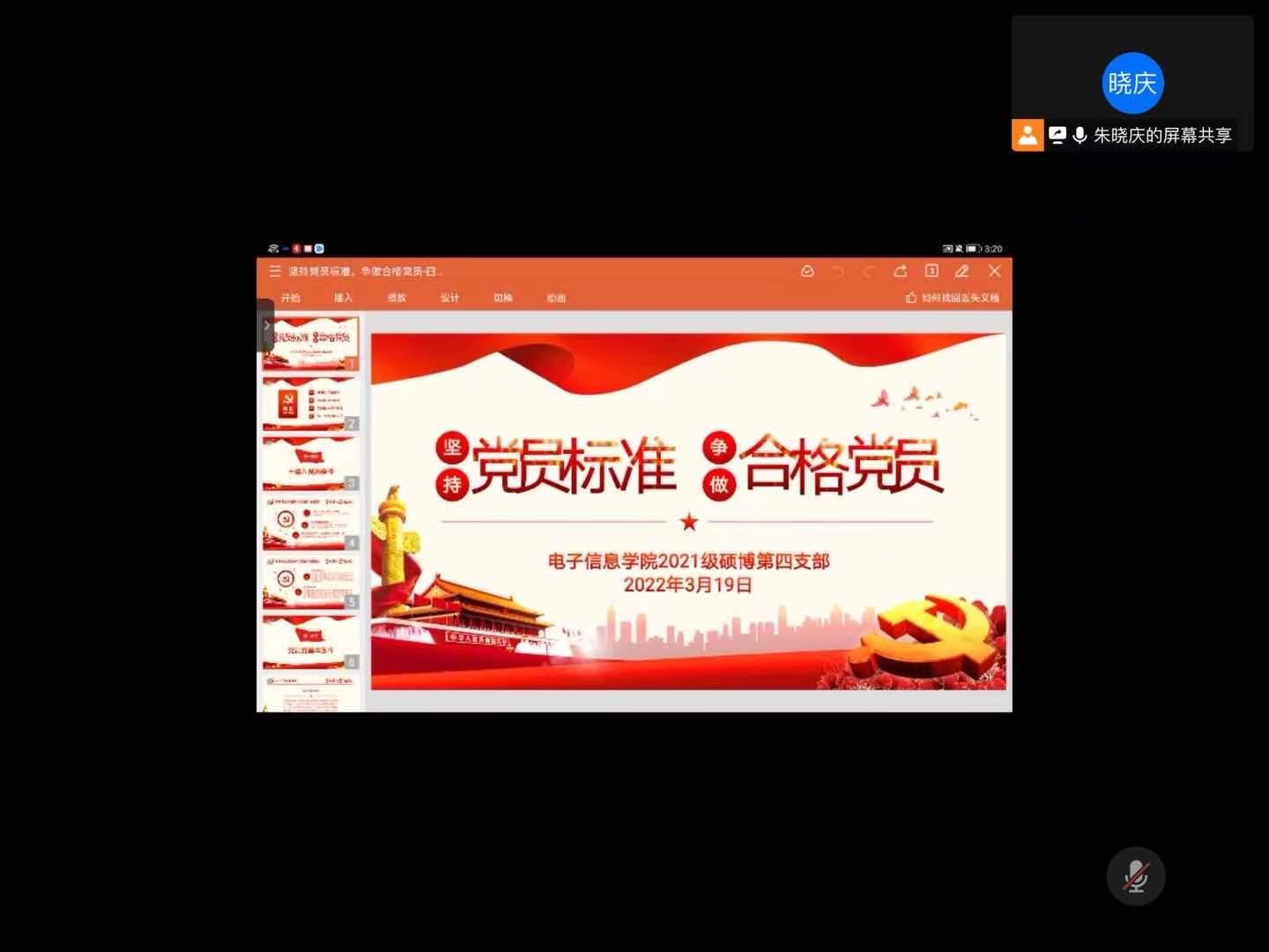 为了做好积极分子的发展培训工作,提高积极分子党性修养,电子信息学院2021级硕博第4党支部于2022年3月19日下午3点召开线上培训会议。