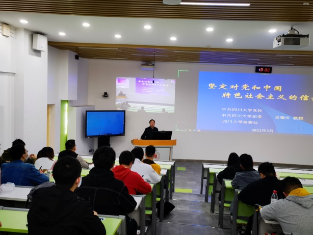 2022年3月26日星期六上午9:30,best365中国官方网站电子信息学院第152期党校第二次行课在望江校区、江安校区通过线上线下方式结合召开。主讲会场设置在望江校区基础教学楼C201教室。为落实国家疫情防控措施,学员在教室佩戴口罩间隔落座。望江校区部分学员、江安校区全体学员通过网络会议的形式在各校区直播学习教室参与本次学习。