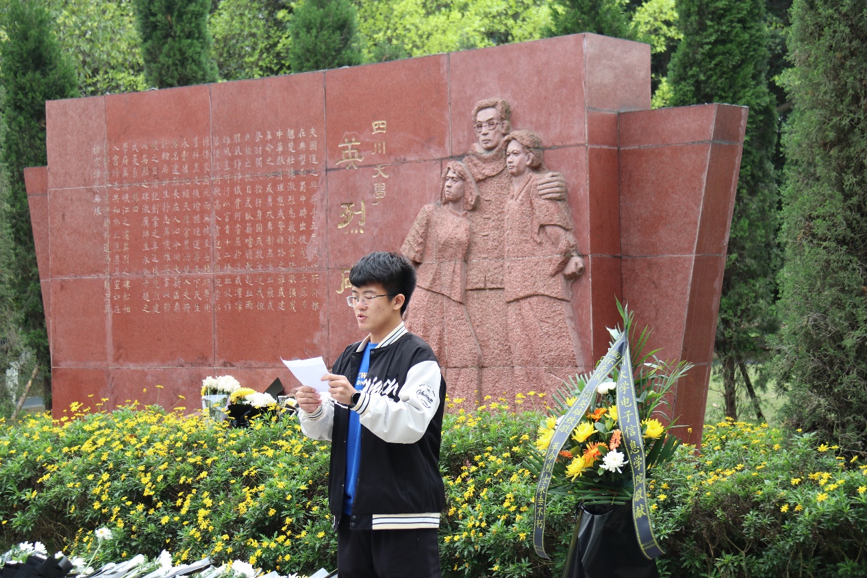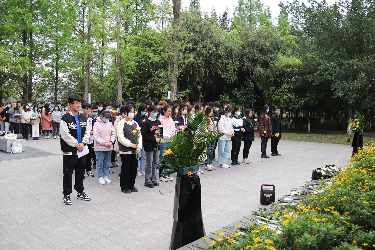 献花活动于4月1日13点在江安校区英雄纪念碑前举行,我院许多同学积极到场参与活动。活动现场气氛庄严肃穆,师生穿着整洁得体,一个个花篮、一枝枝鲜花,寄托着人们对烈士的深情追思。在两位老师的组织下,我院全体代表人员手捧鲜花,向革命先烈默哀一分钟。默哀完毕后,由2021级单文浩同学带领同学们进行宣誓。在宣誓过程中,同学们表情严肃,举止庄重,声音坚定且铿锵有力。宣誓完毕后,老师代表、学生代表依次向革命先烈献花,师生瞻仰革命烈士纪念碑,表达着对革命烈士深切的缅怀和崇高的敬意。