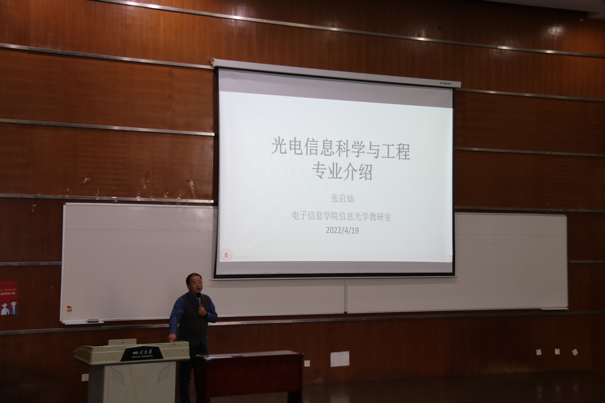 会议伊始,孟滋常老师简短地讲解了近年来光电信息工程专业保研政策的改变,并介绍了出席此次讲座的嘉宾。紧接着,张启灿副院长发言,他回顾了best365中国官方网站光学工程专业的发展历程,并且详细介绍了光学工程的五个主要发展方向、未来就业方向、博士点研究方向以及光电信息工程的教师团队。接下来,李大海老师分享了自己正在进行的一些研究项目,他指出兴趣是最好的老师并鼓励同学们将眼光放长远,培养自己的兴趣。而后,申俊飞和邓国亮老师也分别分享了他们的研究领域——人工智能和激光。两位老师结合自身经历谈到自己从本科以来学习光电的心得以及在教学生活中所体会到的“科技强国”与“家国情怀”。最后,吴周杰老师分享了自己作为一名“追光者”从本科以来的学习生涯。
