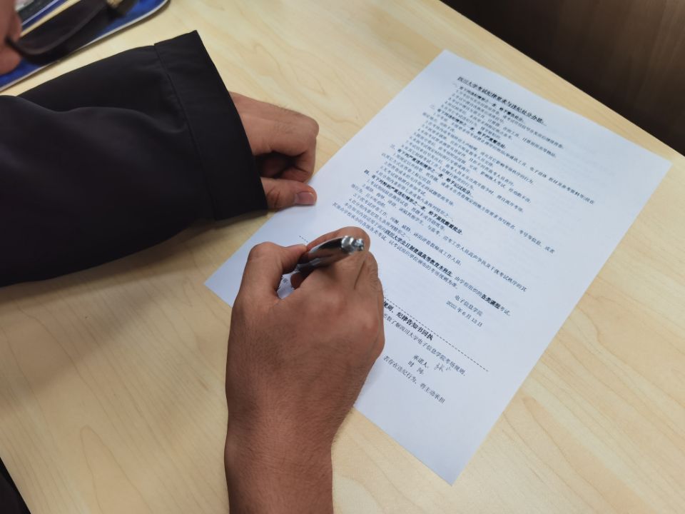 为进一步开展学生诚信教育,强化学生考风考纪管理,2022年6月16日下午13点50,电子信息学院本科2020级在best365中国官方网站江安校区综c407召开考试纪律教育会。本次会议由2020级辅导员陈晓娟老师主持,全体2020级同学到会。