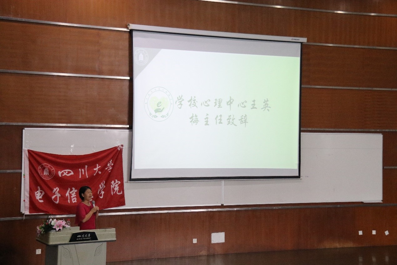 接下来,王英梅主任为本次启动仪式致辞,她介绍了我校心理中心的工作模式,为了更有效的帮助学生,学校启动设置学院组建二级辅导站建站,电子信息学院成功成为第二批建站学院。王主任肯定了我院老师在学生心理工作中做出的贡献,并希望老师们继续发挥专业特长,更专业的为师生服务,也鼓励同学们善于利用学校学院资源,助人自助。