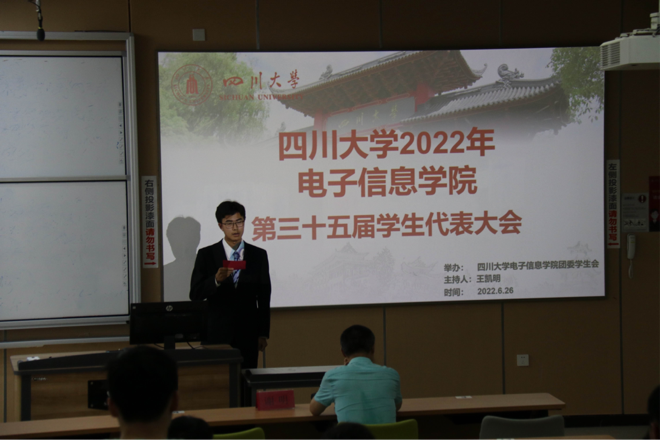 2022年6月26日15点,电子信息学院团委学生会于江安校区综合楼C座105教室成功举办了第三十五届学生代表大会。本次活动由组织部干事王凯明主持,电子信息学院团委书记谢明老师、2020级学生代表、电子信息学院团委主席团、部长团参与了本次会议。