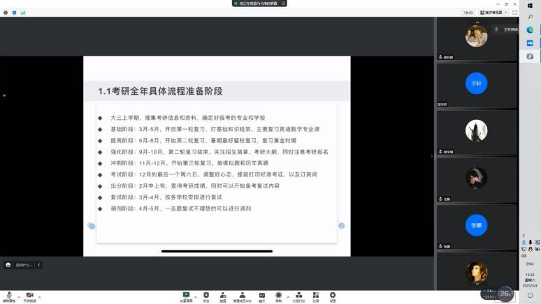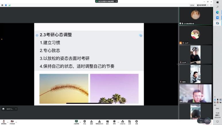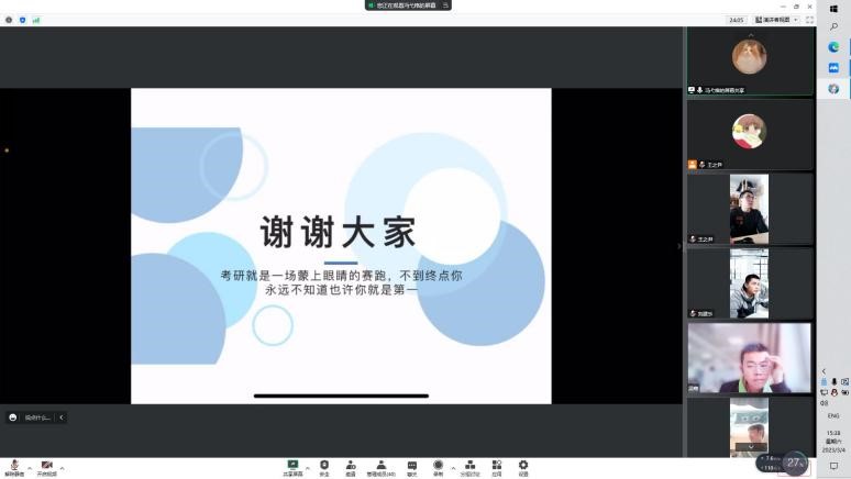 2023年3月4日15时30分至16时30分,电子信息学院2020级2班召开大三下学期第一次线上班会,主题为考研复习规划。2020级2班团支书冯弋格和班长王之尹组织推进本次主题班会活动,为即将备考研究生入学考试的同学答疑解惑,得到了大家的广泛参与。