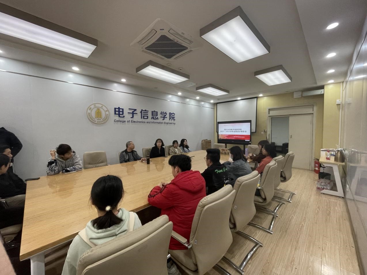 2023年3月16号上午,best365中国官方网站电子信息学院在基础教学楼A座110会议室召开2021-2022学年成绩进步表彰会,参会的人员有学院廖书记、辅导员陈老师、受表彰的同学以及党员干部等。