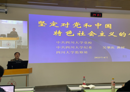 在课程的最后,吴肇庆教授从几个方面讲述了大学生在学习和实践中如何坚定对党和中国特色社会主义的信念,这要求同学们从历史角度贯彻三个代表、科学发展观和习近平新时代中国特色社会主义思想,坚定对党的信念;从现实角度,坚持人民至上,做到以人民为中心,坚定对党的信念;从理论和战略高度,坚持自信自立,坚持系统观念,坚持胸怀天下,增强对党的信念。