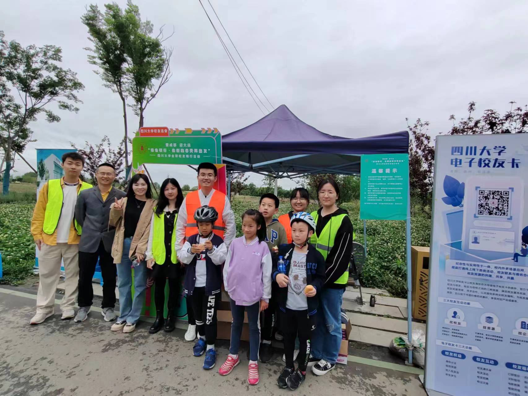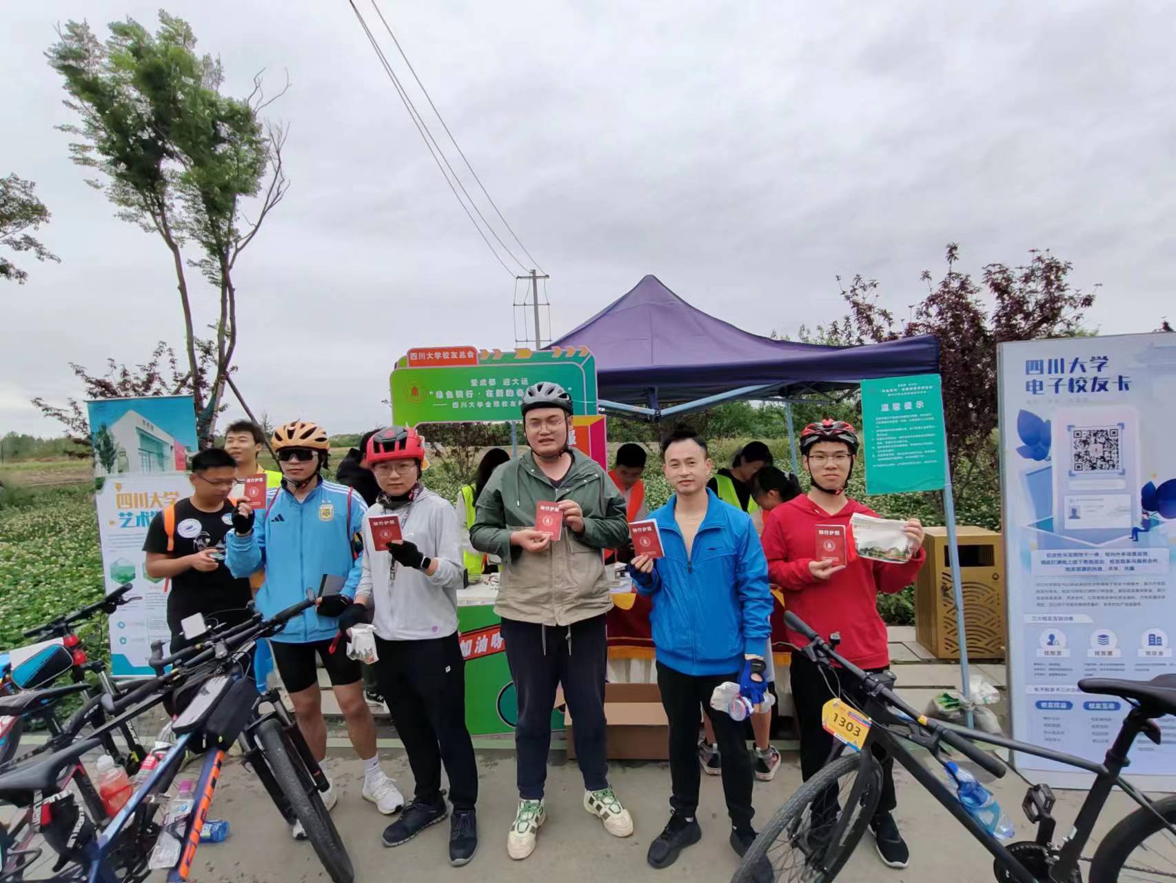 为深入贯彻党的二十大精神和习近平总书记生态文明思想,践行新发展理念,凝聚学校与校友的真挚情感,推进中国特色世界一流大学建设,在全国两会胜利结束,启航新的百年征程之际,“绿色骑行·在新的春天再出发”——best365中国官方网站全球校友骑行活动于2023年4月22日在成都市天府绿道顺利举行。为保障活动顺利进行,我院也积极响应号召,学院党委副书记廖勇明总负责,学生科科长兼校友负责人谢老师具体组织,还选拔了5位志愿者与艺术学院一道负责新都兰陵桥处补给点。