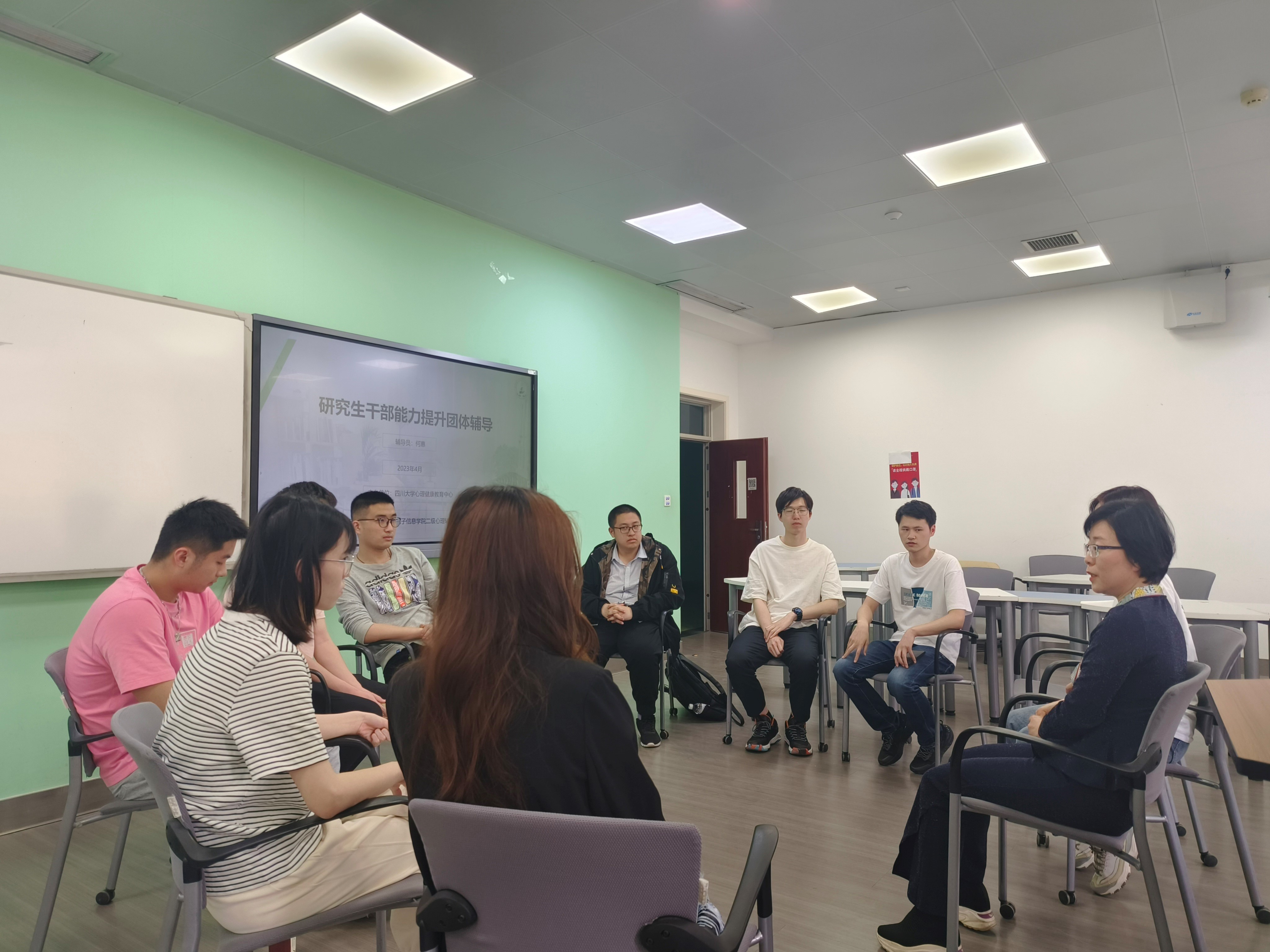 2023年4月12日下午15:00-17:00,电子信息学院二级心理辅导站——电子“心晴e站”在best365中国官方网站望江校区基教A304开展了“增进交流,提高学生干部认同感”研究生干部成长团体辅导第一次辅导。本次团体辅导由电子信息学院2020级辅导员、二级心理辅导站业务负责人何惠老师担任带领者,二级心理辅导站学生干部吴芳、曹鹏为活动负责人,研究生各班心理委员、班长、团支书、党支书等十余位同学参与了此次活动。