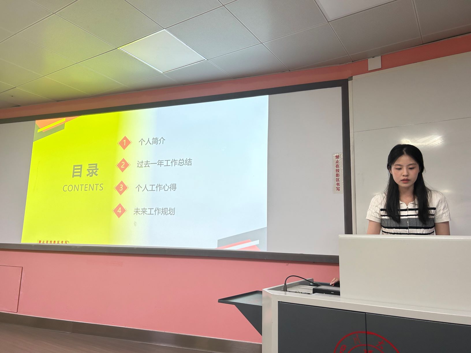 随后,大会进入候选人竞选答辩环节。每位竞选人展示了自己上一年的工作内容和收获心得,同时也对研分会下一年工作规划进行了详细阐述。