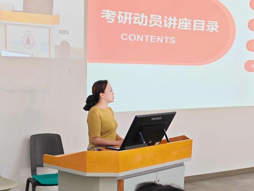 接着由辅导员陈晓娟老师从考研的目的、考研学生的类型、考研应该怎么做以及学校坚实的保障四个方面,进一步帮助了同学明确这条考研道路的方向。她分析目前考研对同学们的重要意义,希望同学在研路上笃行致远,明确目标,坚毅意志,不放过努力的一分一秒,奋力追梦,取得硕果。同时,陈老师鼓励同学们充分利用学院资源,结合自己的兴趣和实力正确选择报考院校和专业。为了让大家更加清晰自身定位,明确报考院校,学院开展了坚实的保障工作,力求在关键时间节点给予同学们充分支持和有效指引,帮助2020级的同学认清考研形势,把握人生际遇!