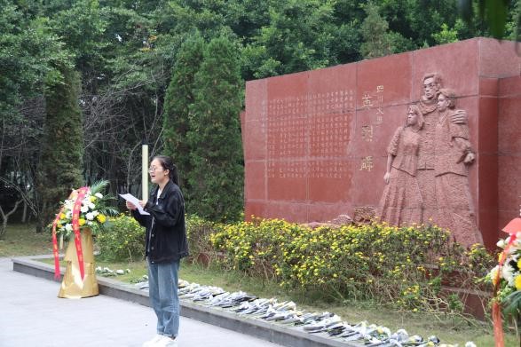 本次活动由2022级学生代表吴子竞同学主持进行。活动开始,由2022级高山荔同学进行《致敬,伟大的烈士》诗歌朗诵,以弘扬烈士精神。随后,2023级学生代表叶果同学进行发言,带领同学们了解英烈事迹。发言结束,全体师生肃立致哀,追忆万千英烈,在烈士碑前默哀三分钟。默哀完毕,全体师生代表依次向烈士敬献花圈,向烈士们表达崇高的敬意。最后,全体师生瞻仰烈士碑,告慰烈士英灵。