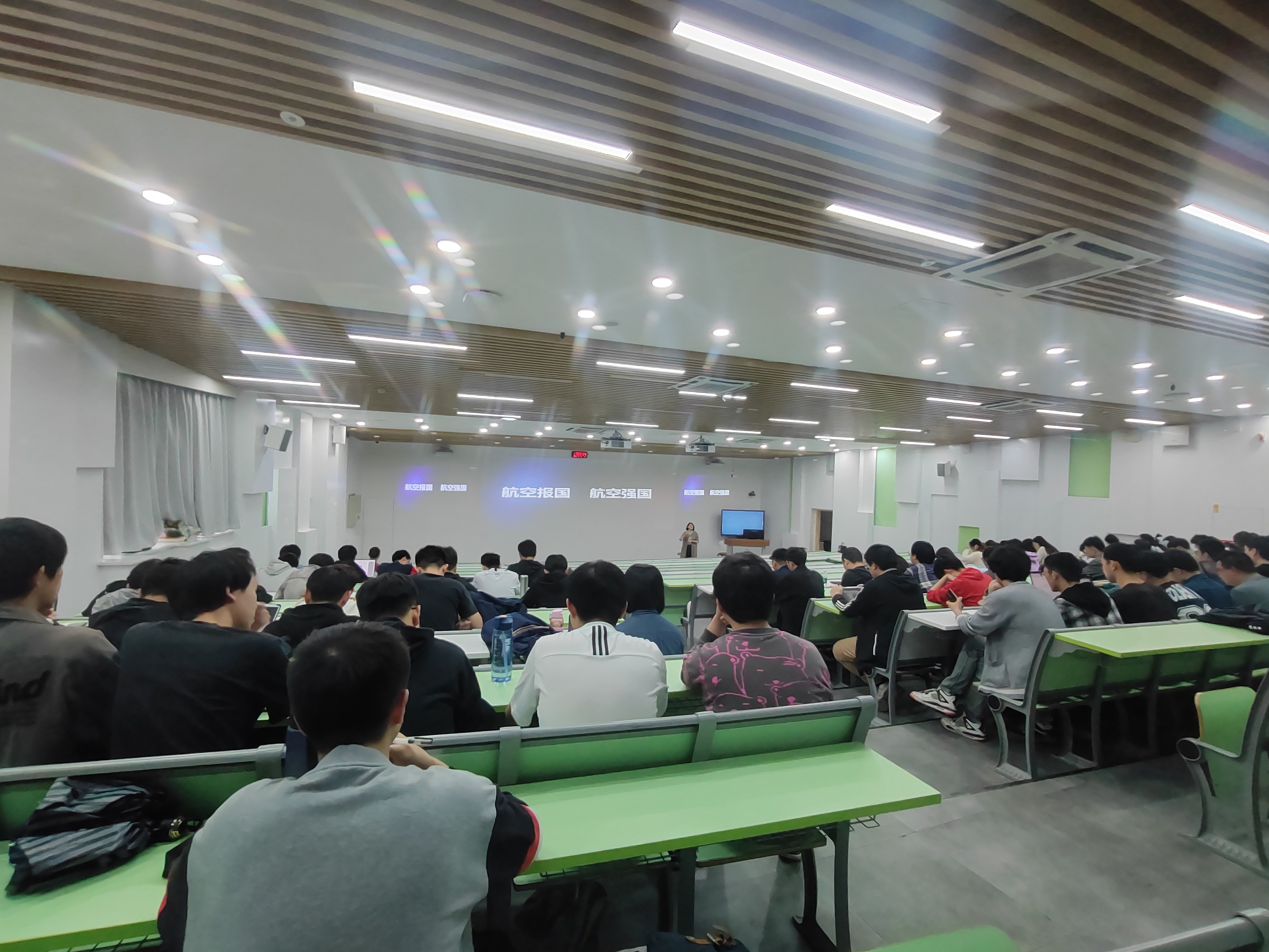 “航空报国,航空强国,是航空人的初心使命!在世界百年未有之大变局下,对新装备、新跨代、新超越的号角已经吹响!”王部长以中国航空工业集团有限公司出发,首先向同学们讲述了我国航空航天的发展史,再提出了在新时代下航空航天事业对人才需求的迫切,鼓励同学们将个人追求与国家发展相结合。