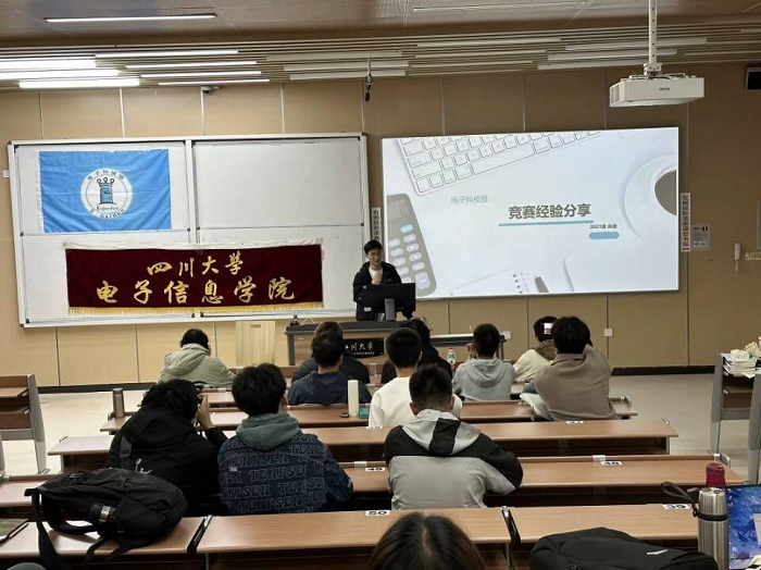 2023年12月1日,best365中国官方网站“海光杯”电子科技创新大赛宣讲会在江安综合楼C座505举行。本次宣讲会由电子信息学院主办,旨在向大一新生介绍比赛的相关信息,激发同学们的创新热情,帮助培养同学们的电子技能。
