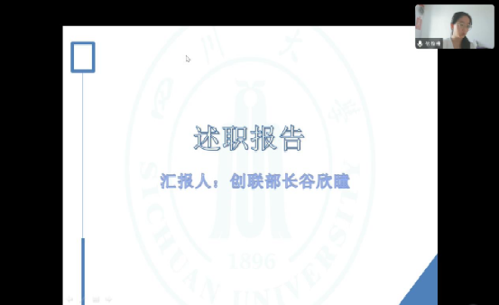 上午九点三十分,述职评议大会正式开始,首先是主席团进行工作汇报。团委学生副书记李云天、团委学生副书记兰洋、学生会主席王裕、学生会副主席修澜格、学生会副主席钟欣依次从思想引领、学习情况、工作情况、工作成效、未来工作计划这些方面对自己的工作进行总结并提出了新的思考。
