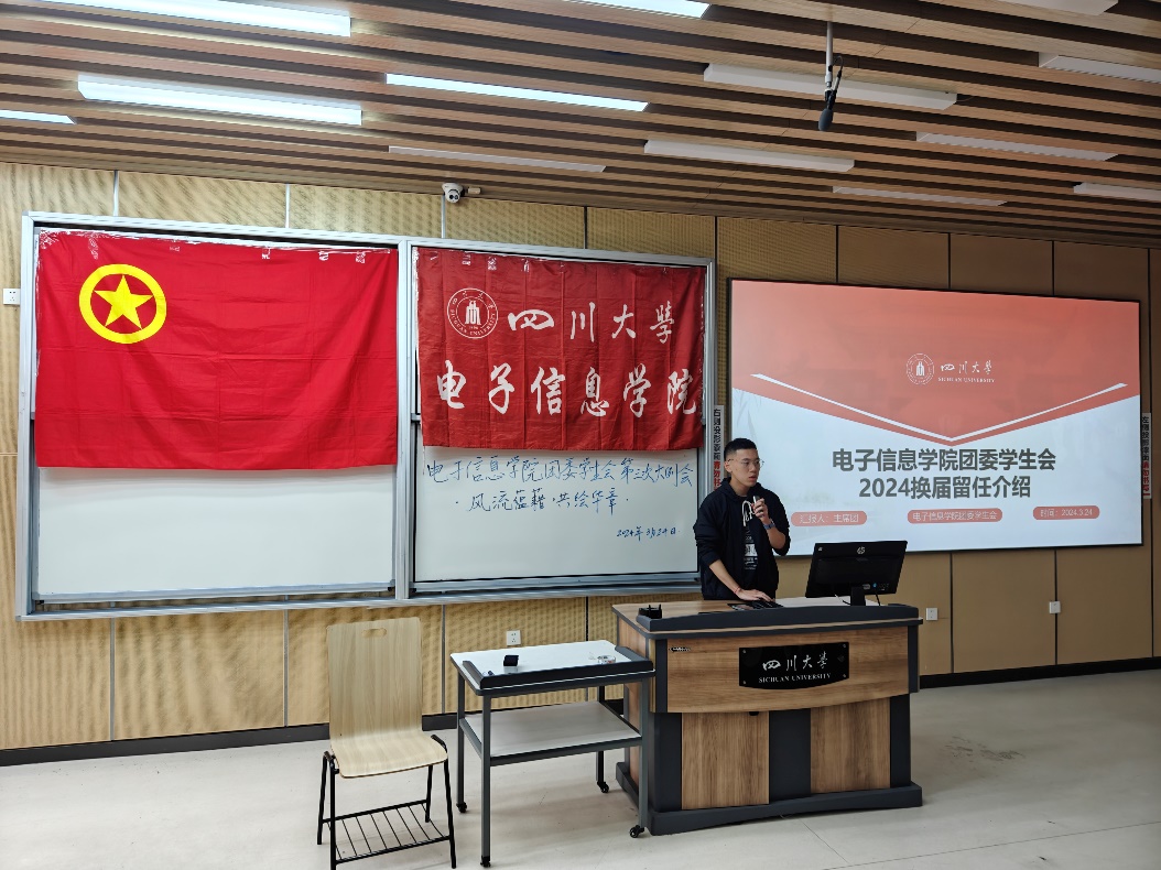 学生会主席王裕进行换届留任介绍