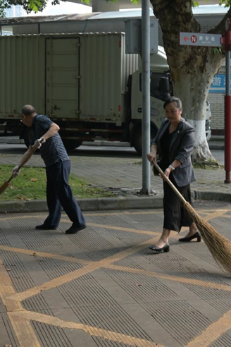 图1、2 院校师生打扫校园