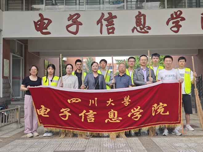 为认真贯彻落实习近平总书记关于爱国卫生运动的重要指示精神,进一步营造干净整洁、舒适有序的校园环境,以实际行动庆祝五一劳动节,电子信息学院于2024年4月26日组织全体师生参与校园卫生集中清扫活动。电子信息学院党委廖勇明副书记、分团委副书记何阳老师、学生科科长谢明老师,与就业中心杨梅副主任、就业市场科颜萍老师带领同学们一起参与集体劳动,以整洁有序、安全文明的校园面貌迎接“五一”国际劳动节的到来。