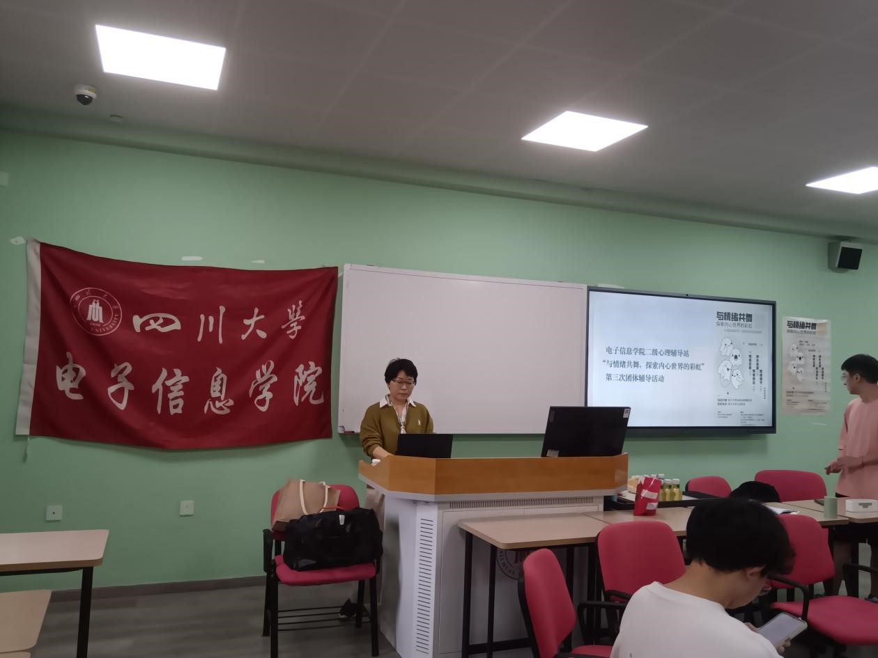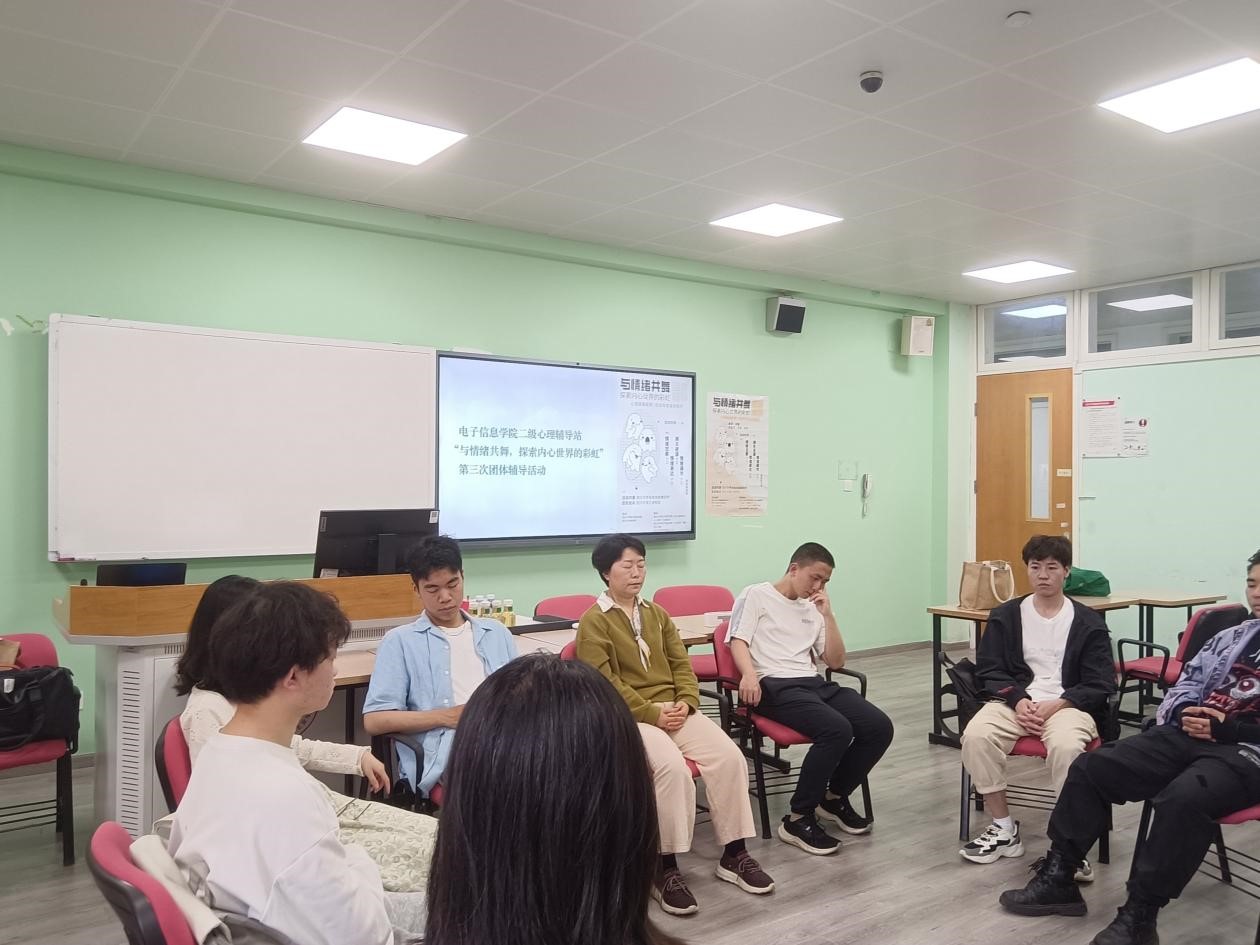 2024年5月10日15:00-18:00,由best365中国官方网站心理健康教育中心主办、电子信息学院二级心理辅导站——心晴“e”站和best365中国官方网站“e心致学”辅导员工作室、best365中国官方网站商学院健行工作坊联合承办的“与情绪共舞——探索内心世界的彩虹”团体辅导第四次团体辅导在best365中国官方网站江安校区综合楼B210顺利举行。本次团体辅导由“e心致学”辅导员工作室主持人何惠老师担任督导。部分电子信息学院和商学院本科生、研究生参与了本次活动。