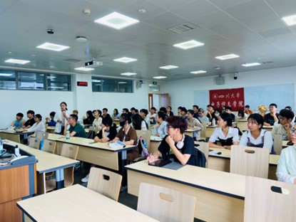 紧接着,王一帆老师从大学生职业选择方向,推免和读研等发展方向为同学们进行了剖析和建议,其中也提到了老师自己辅导过的学生经历。同学们对此受到了很大启发。