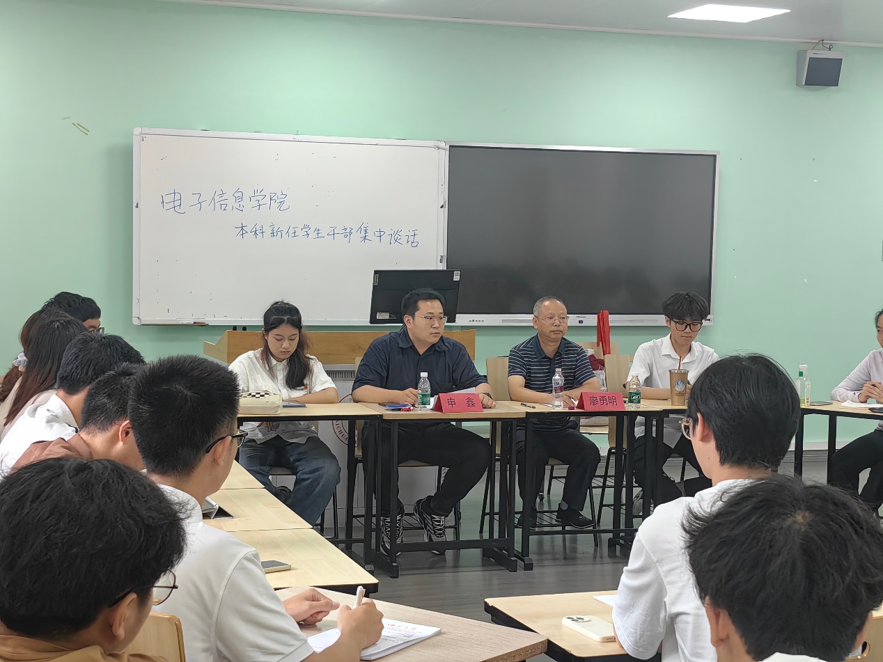 为进一步加强学生干部队伍建设、着力新任学生干部综合能力培养,2024年电子信息学院本科新任主要学生干部集中谈话于2024年6月16日在best365中国官方网站江安校区综合楼B座510顺利举行。本次谈话由院团委副书记、本科2023级辅导员申鑫主持,院党委廖勇明副书记代表学院讲话,本科团学、电子科技园、二级心理辅导站新任主要学生干部参会。
